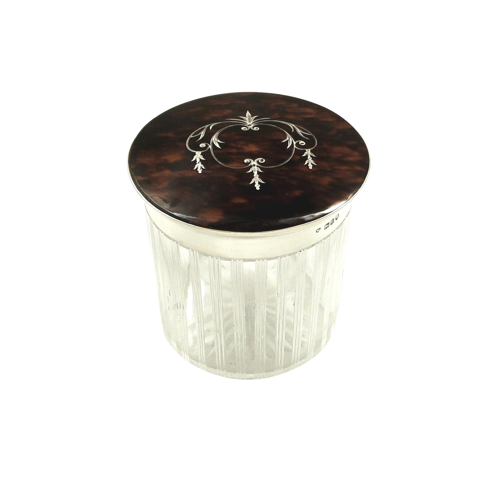 Antique Sterling Silver & Inlaid Tortoiseshell Vanity Jar 1914