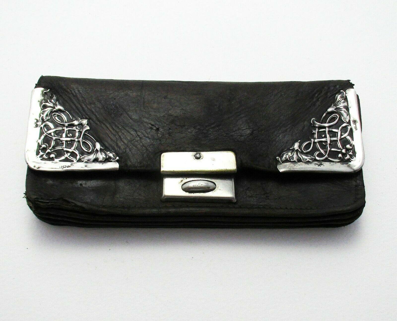 Antique Sterling Silver & Leather English Wallet Purse Name Note Card Stamp Case 1915