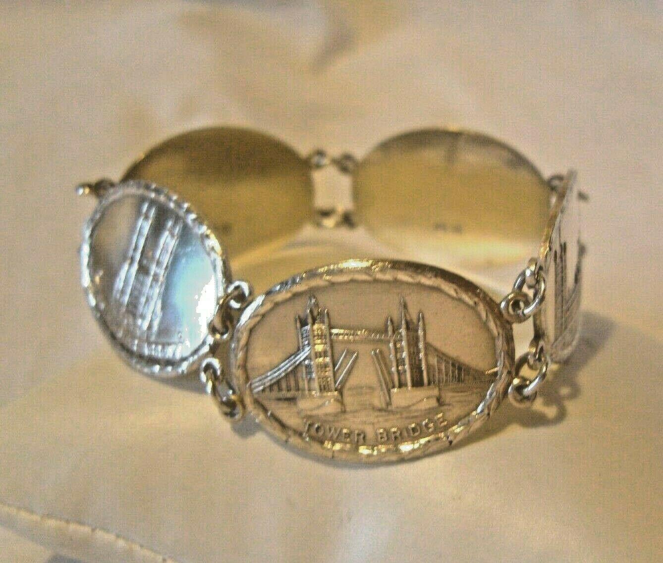 Antique Sterling Silver London Landmark Bracelet 1945 7 1/4" Length Heavy 32.5 Grams