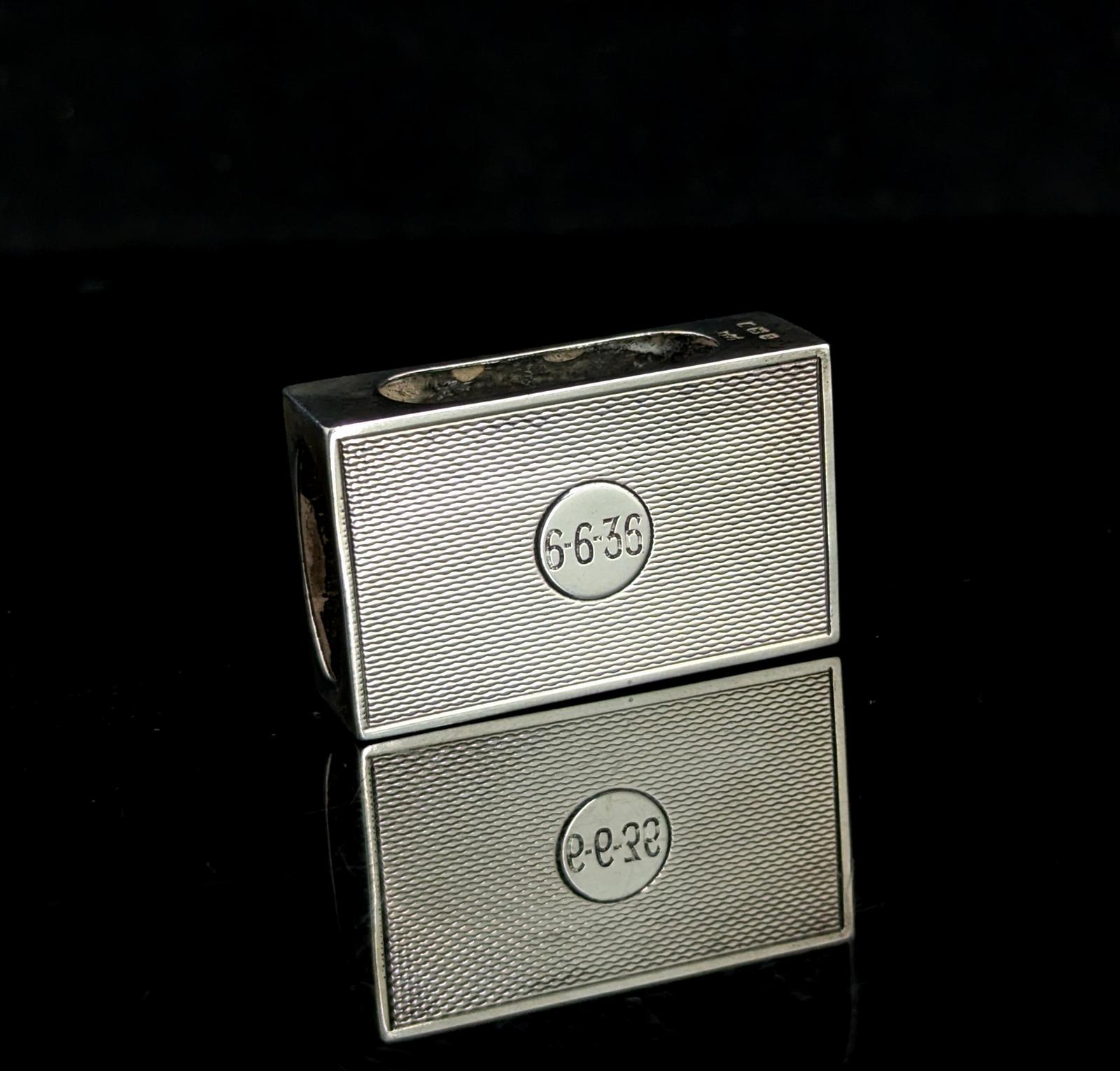 This match holder is engraved with an attractive engine turned design and has a date engraved to the front which is; 5.6.35