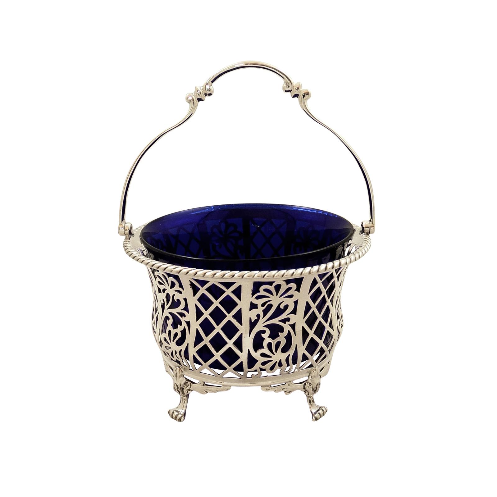 Antique Sterling Silver Pierced Basket with Liner 1926