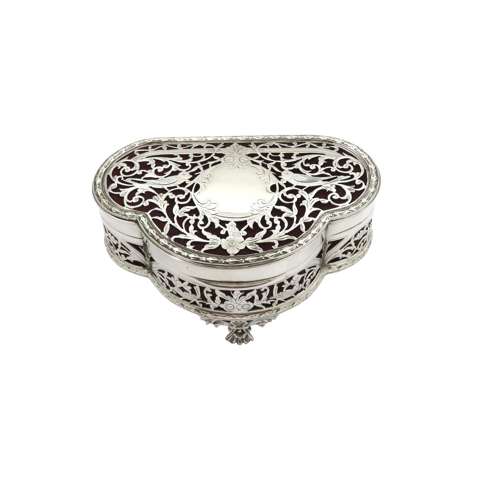 Antique Sterling Silver Pierced Trinket Box - Birds - 1916