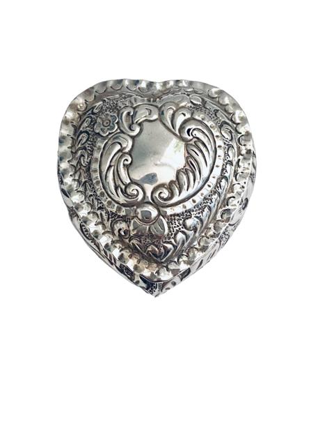 Antique Sterling Silver Pin Heart Form Trinket Box Birmingham 1887