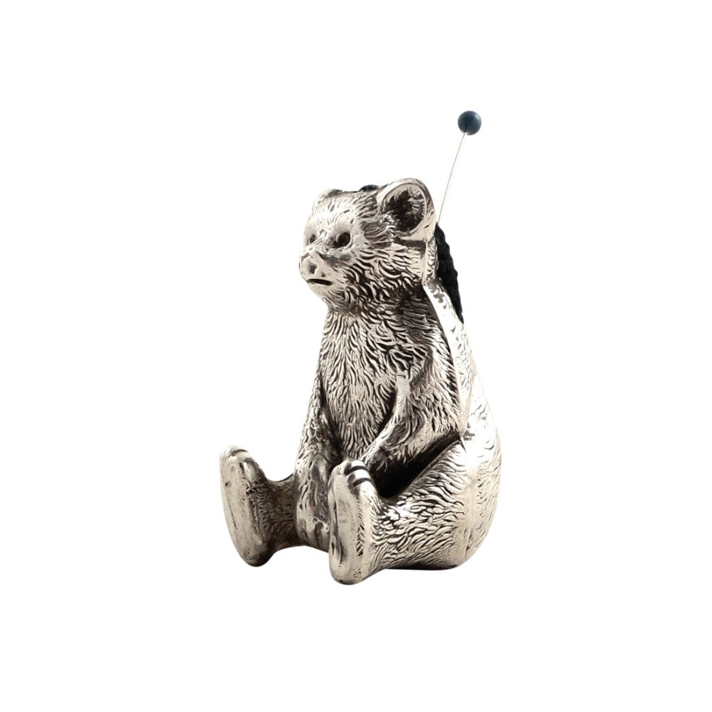 Antique Sterling Silver Sitting Bear Pin Cushion 1917