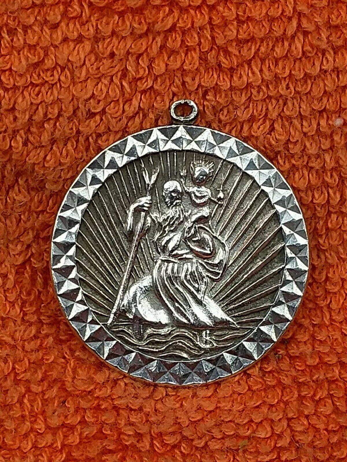 Antique Sterling Silver St Christopher with Jesus on Shoulder Medal c.1930