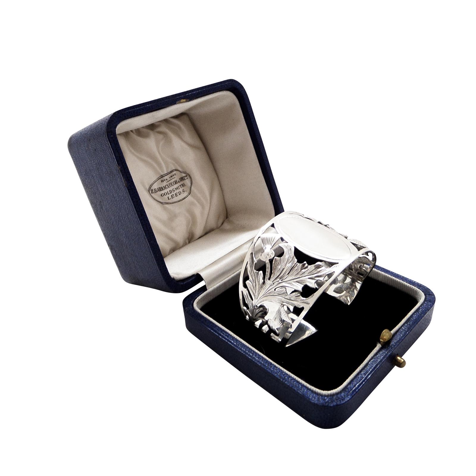 Antique Sterling Silver 'Thistle' Napkin Ring in Case c.1920