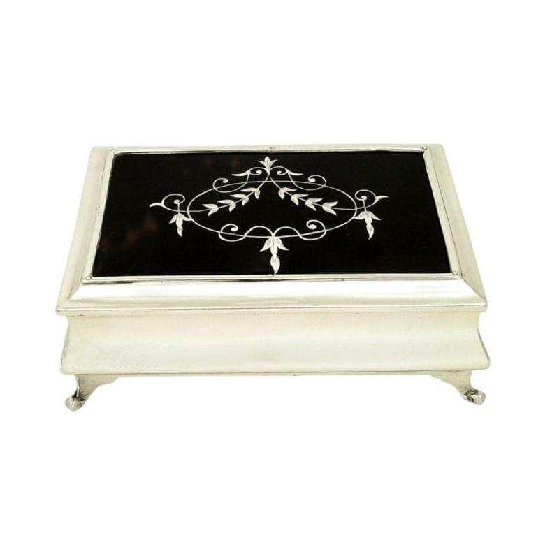 Antique Sterling Silver & Tortoiseshell 5" Trinket Box 1919