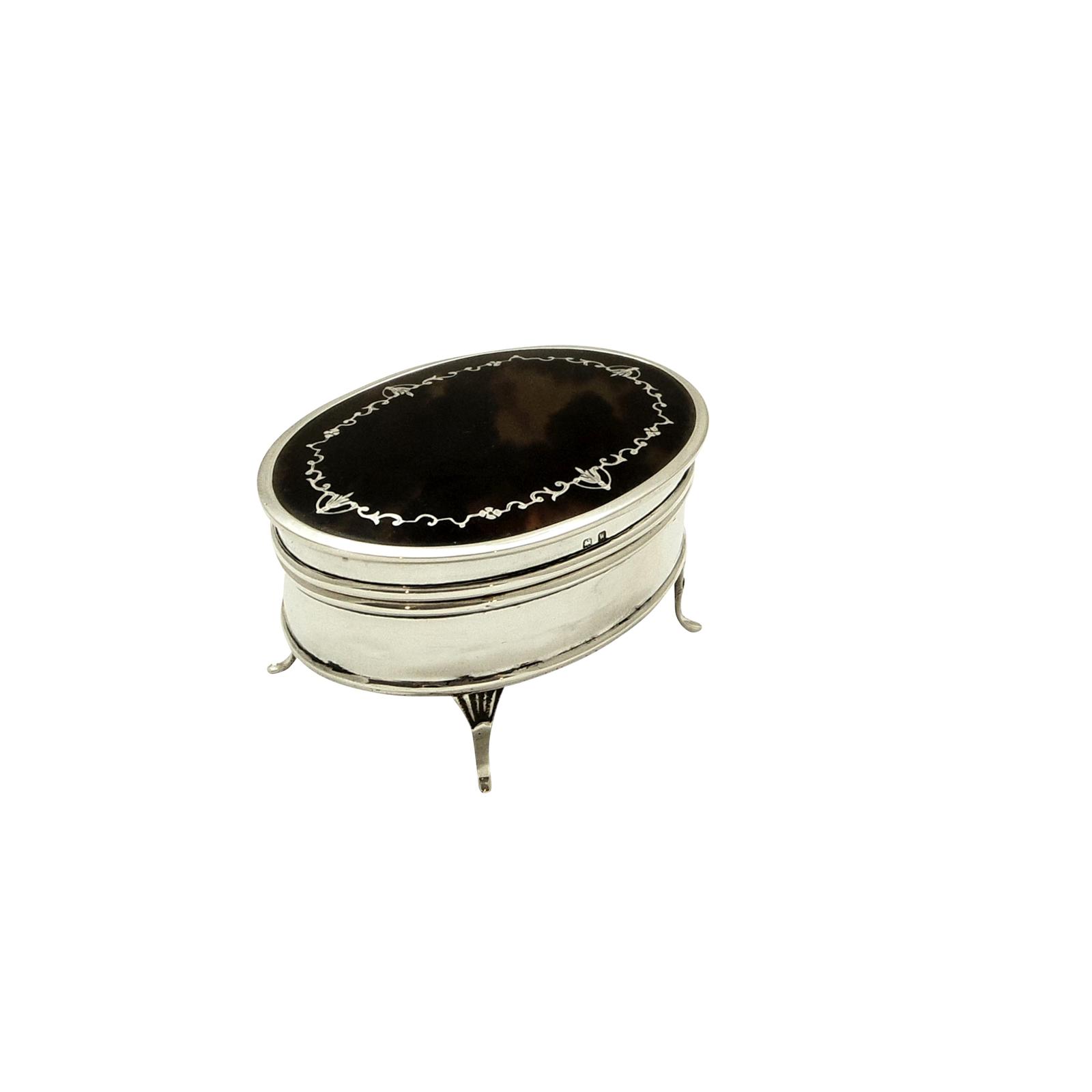 Antique Sterling Silver & Tortoiseshell Trinket Box 1921