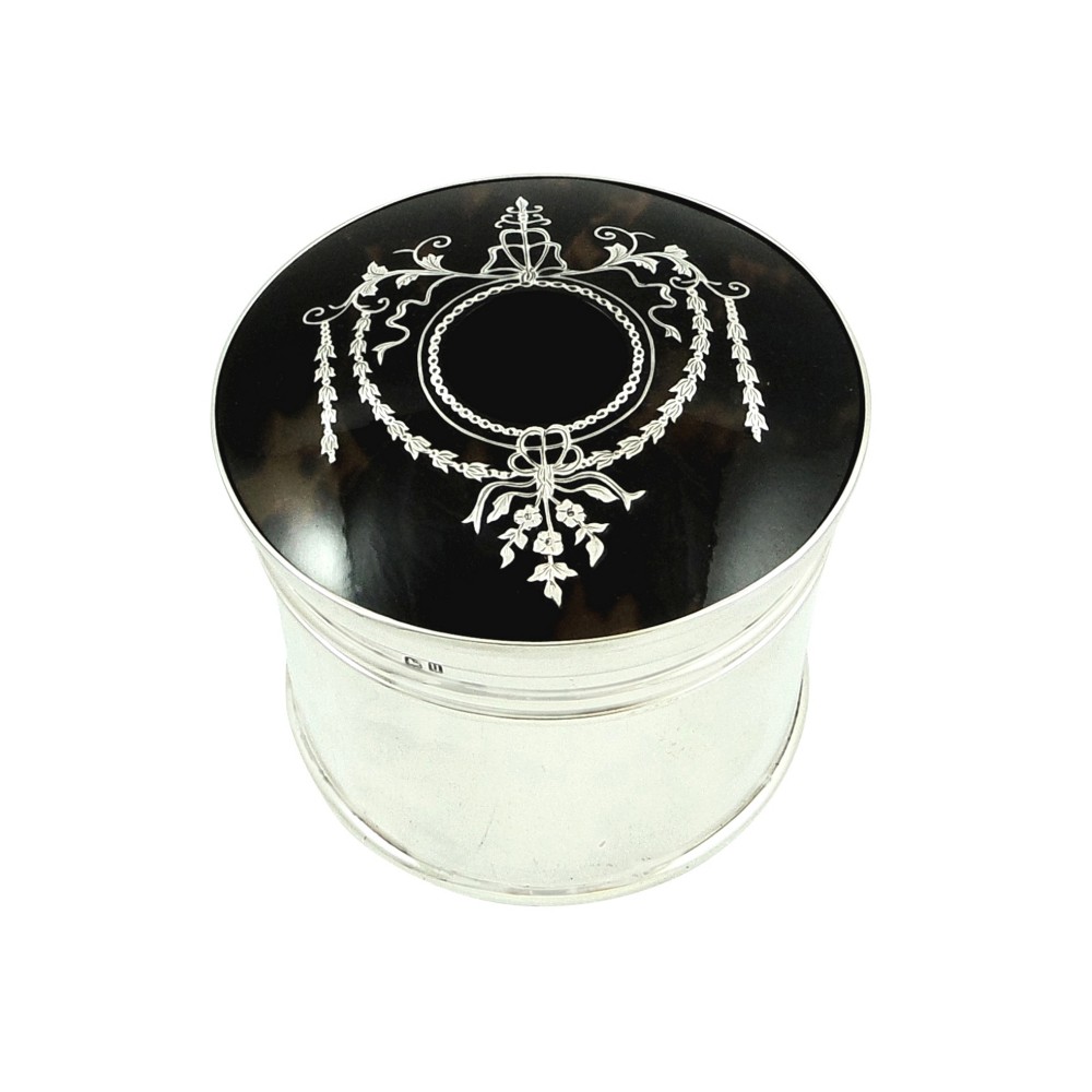 Antique Sterling Silver & Tortoiseshell Vanity Pot / Hair Tidy 1919