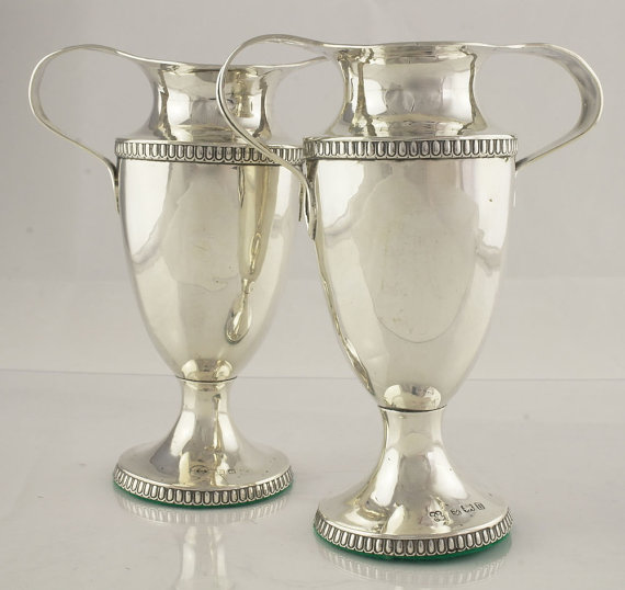 Antique Sterling Silver Vases George V Martin Hall Birmingham 1912