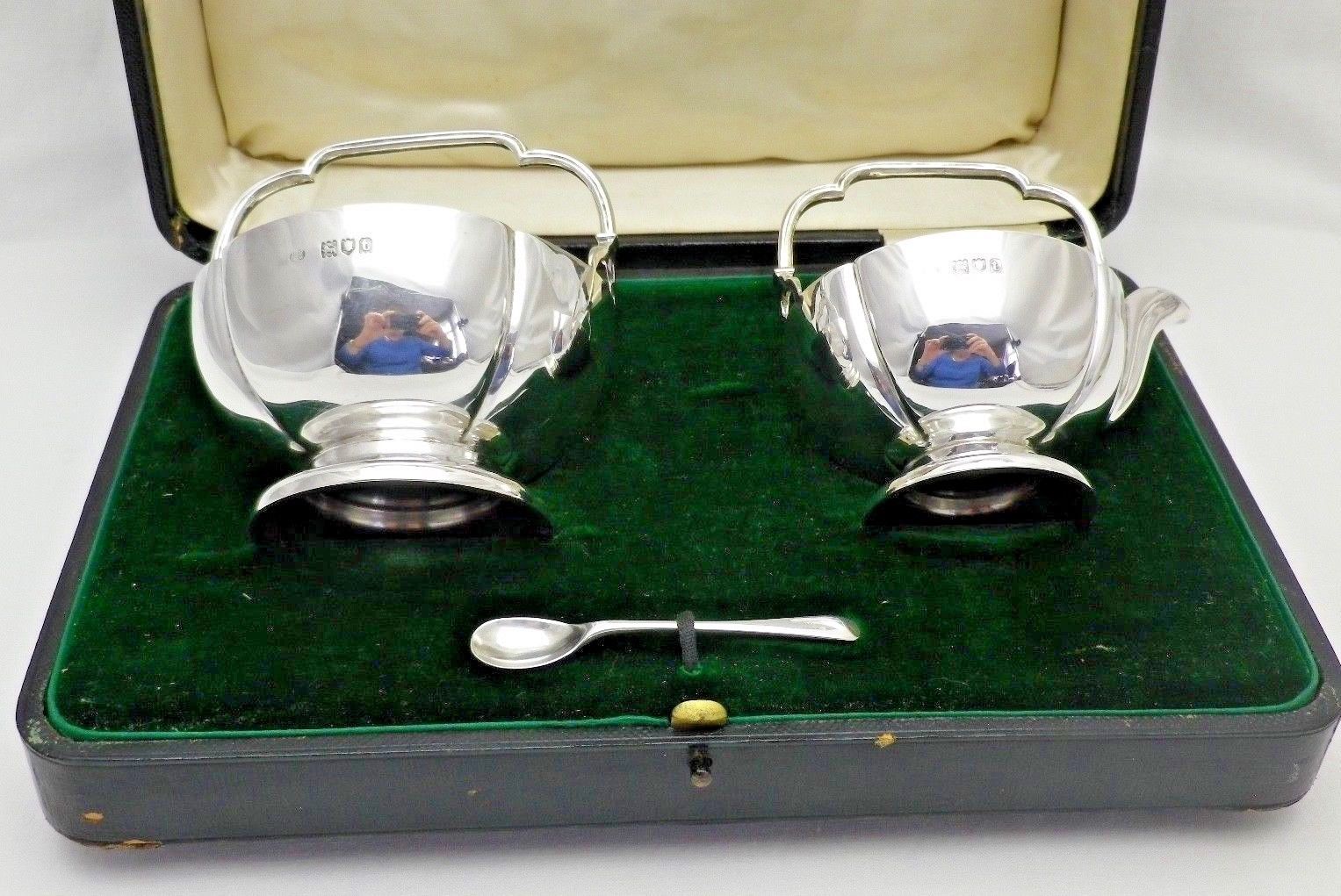 Antique Sterling Solid Silver Cased Cream Jug & Sugar Bowl 1914