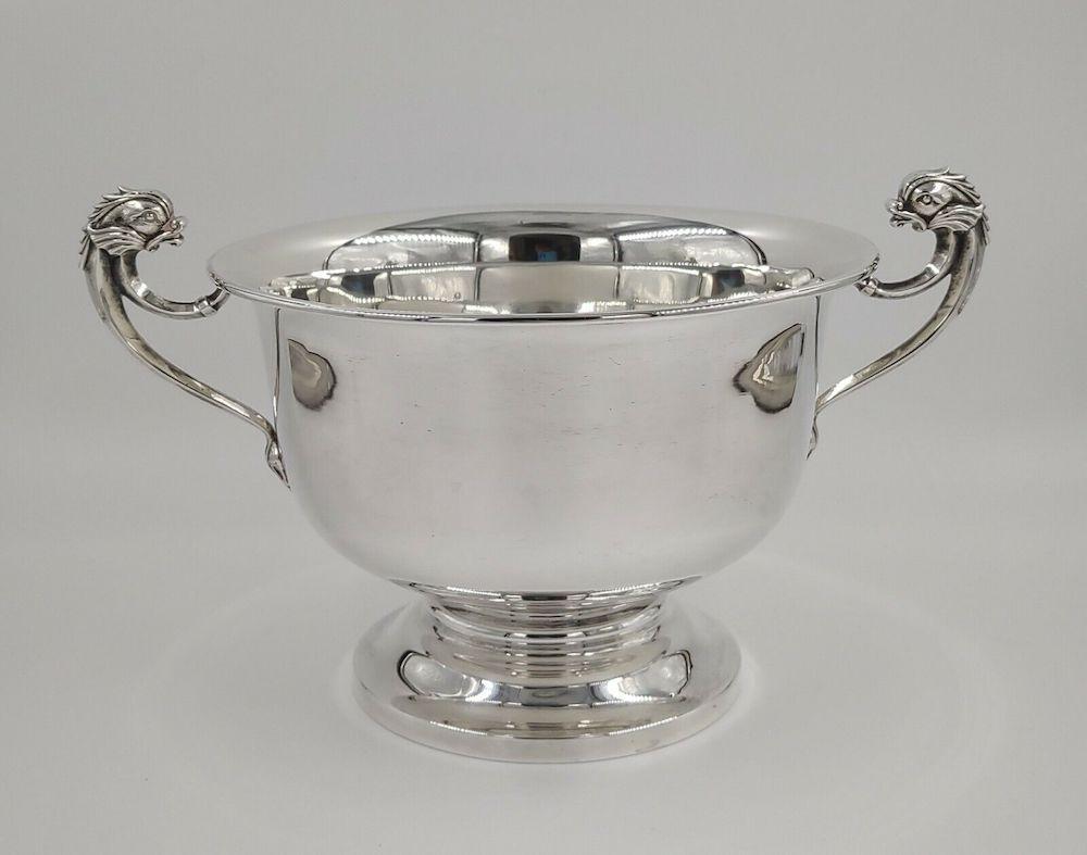 Antique Sterling Solid Silver Dolphin Handle Bowl