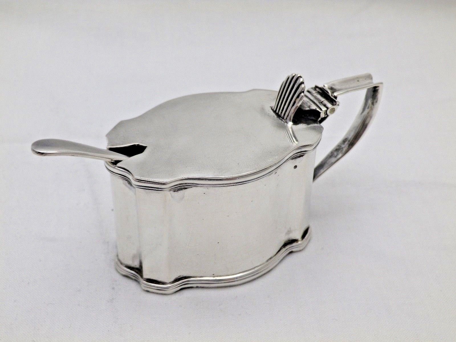 Antique Sterling Solid Silver Mustard Pot & Spoon 1913