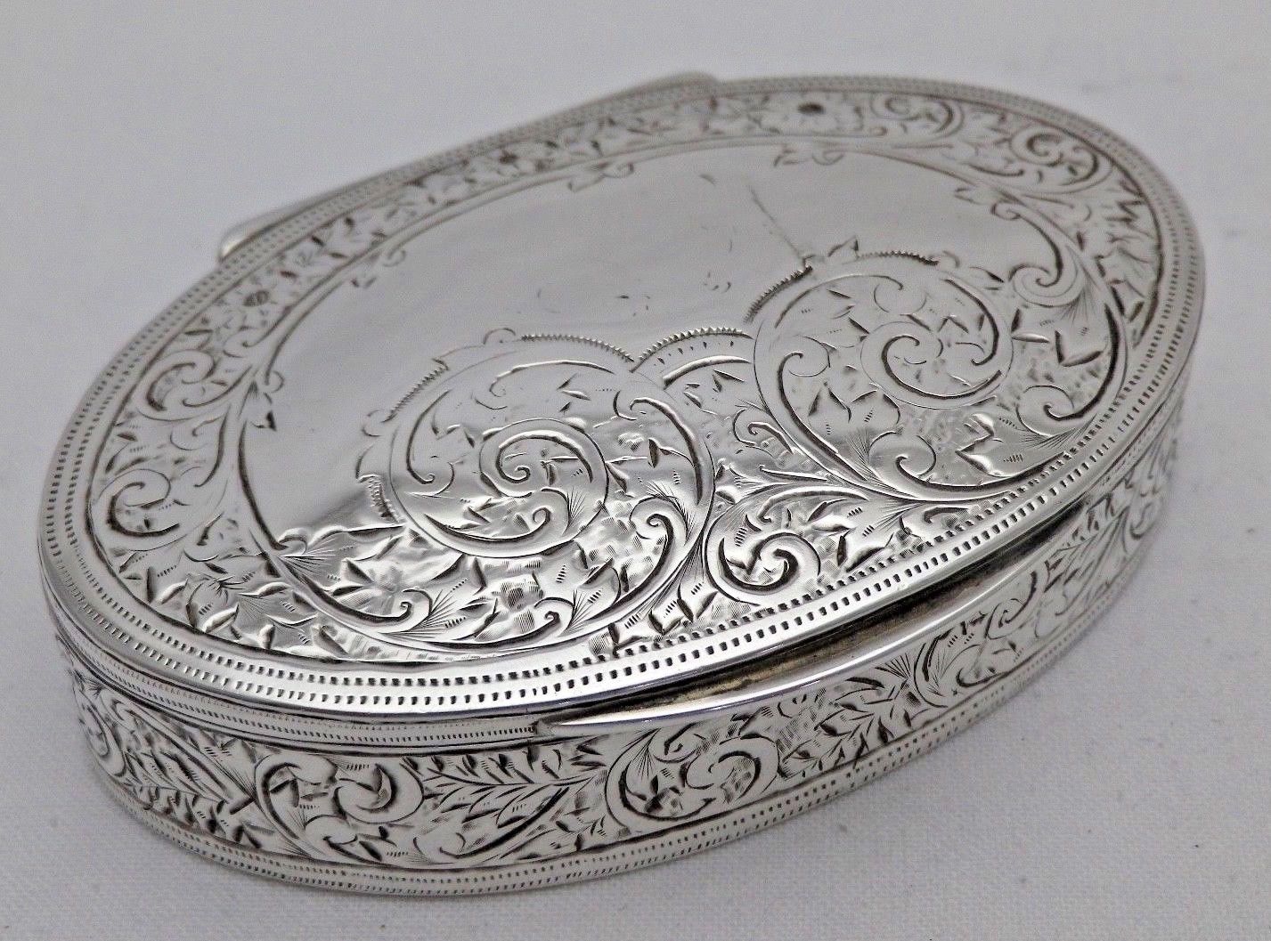 Antique Sterling Solid Silver Oval Snuff Box 1897
