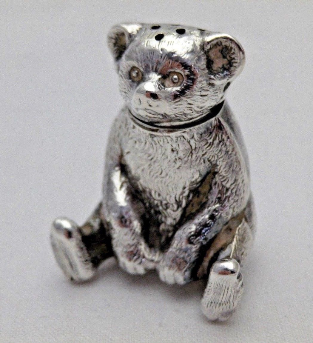 Antique Sterling Solid Silver Pepper Teddy Bear Pepperette 1908