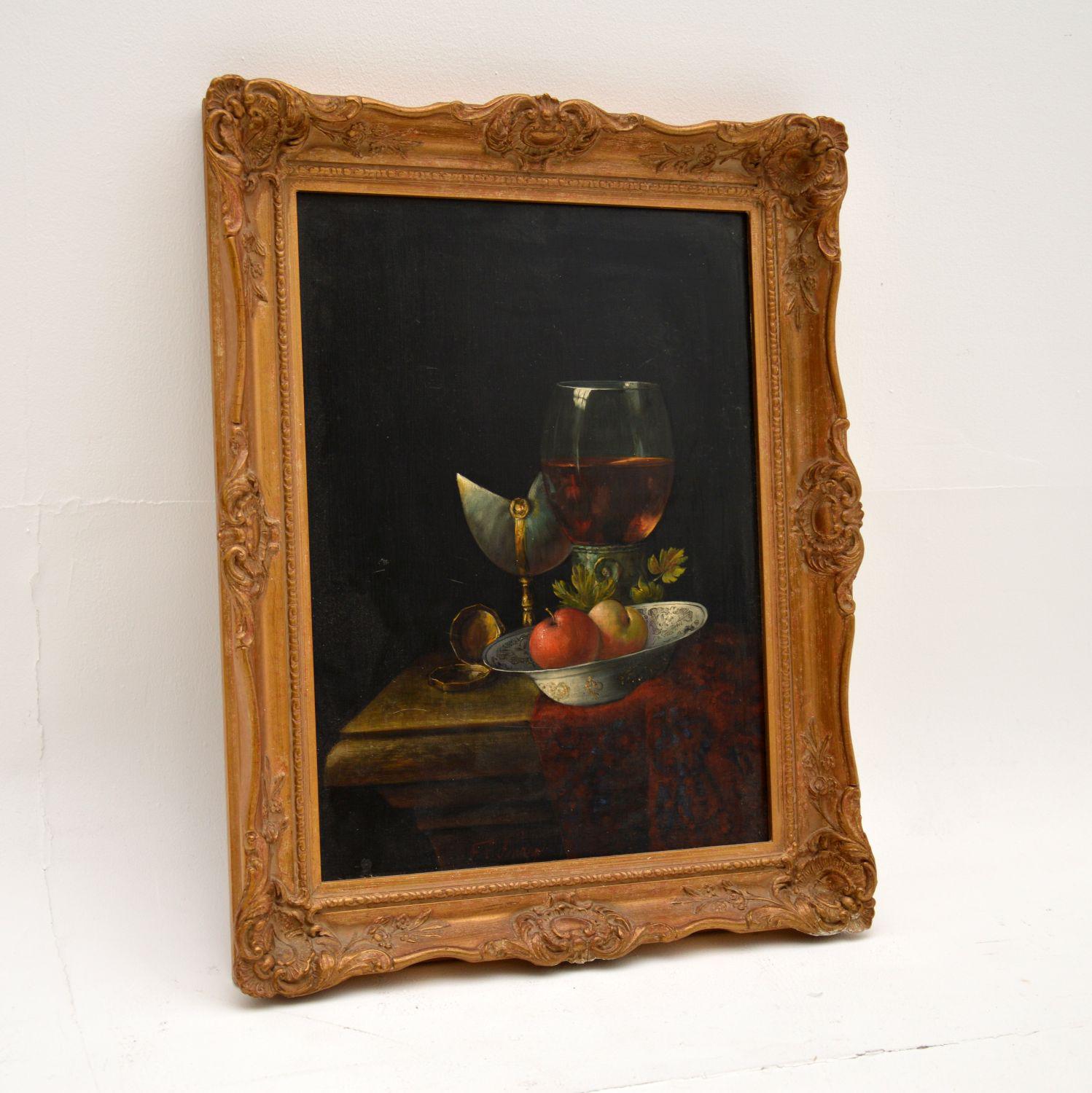 Antique Still Life Oil on Board Painting by F.V Knapp