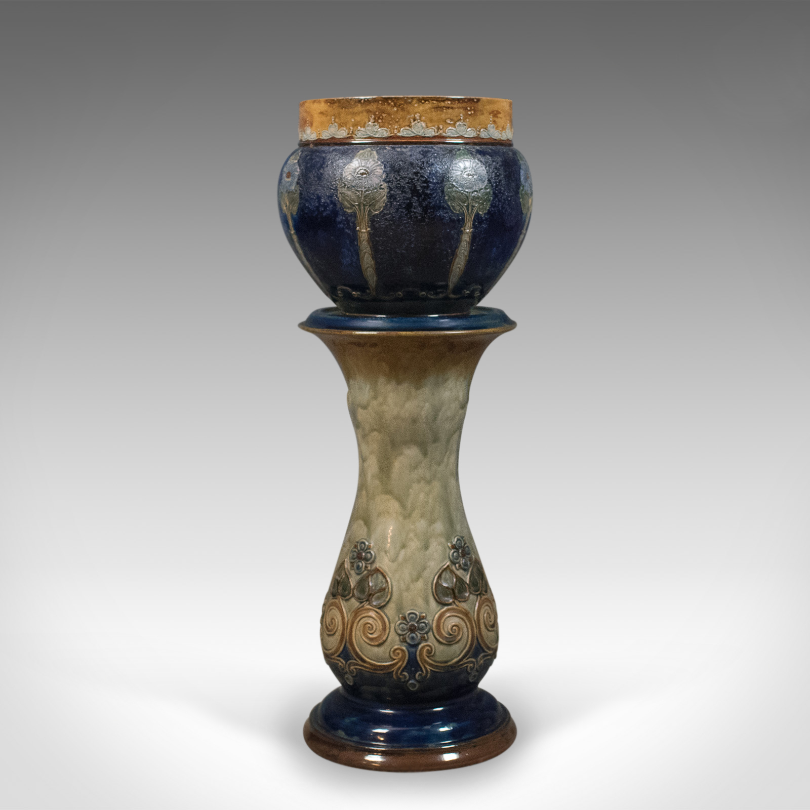 Antique Stoneware Jardiniere on Stand, Royal Doulton, Art Nouveau c.1900