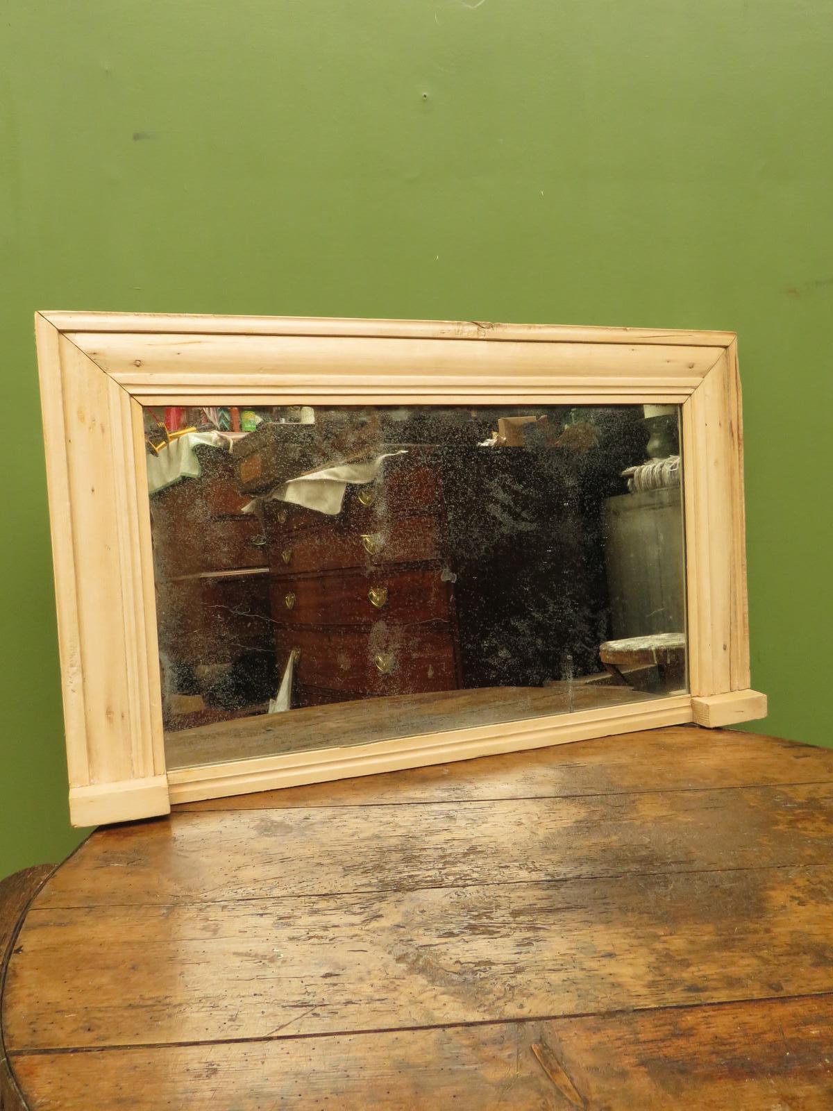 Antique Stripped Pine Overmantle Mirror with Aged Plate