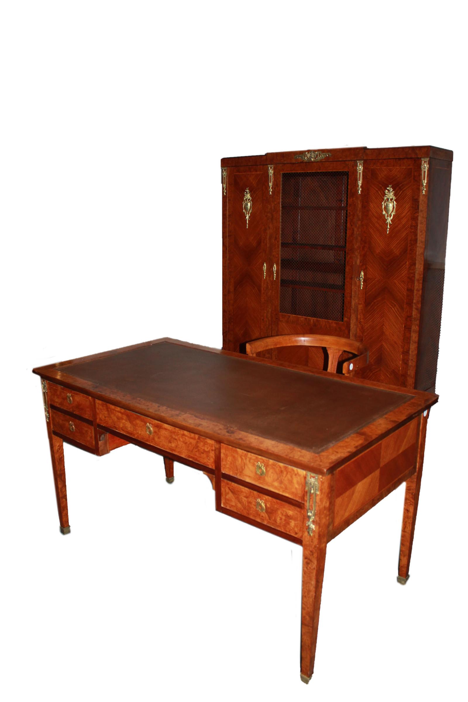 Antique Study Complete with Desk, Bookcase and French Armchair