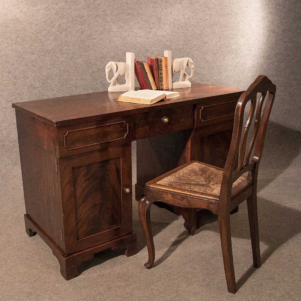 Antique Study Flame Mahogany Victorian Pedestal Desk English c.1850