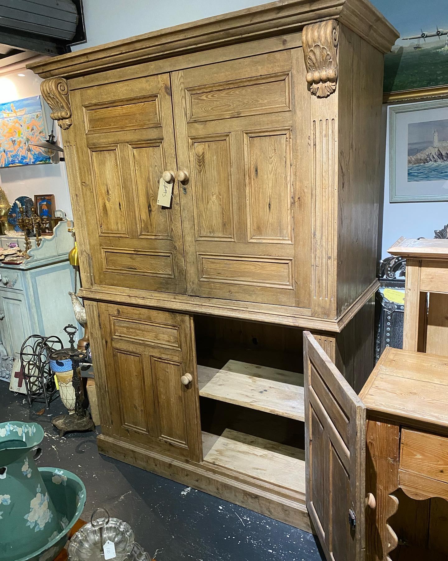 Antique Stunning Pine Linen or Farmhouse Kitchen Cupboard, Massive Piece