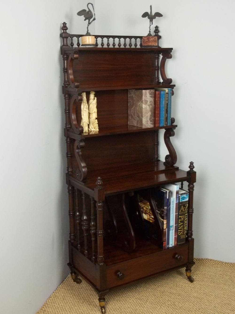 Antique Stunning Quality Georgian / Regency Mahogany Waterfall Open Dwarf Bookcase Canterbury of Graduated Book Shelves