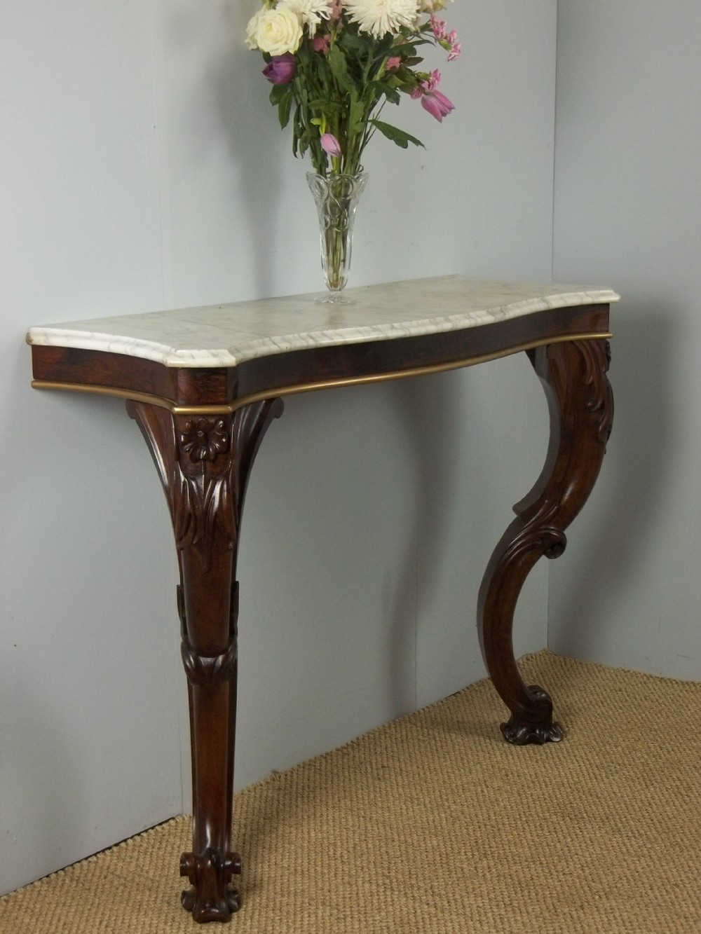 Antique Stunning Quality Rosewood Console Pier Table with Marble Top