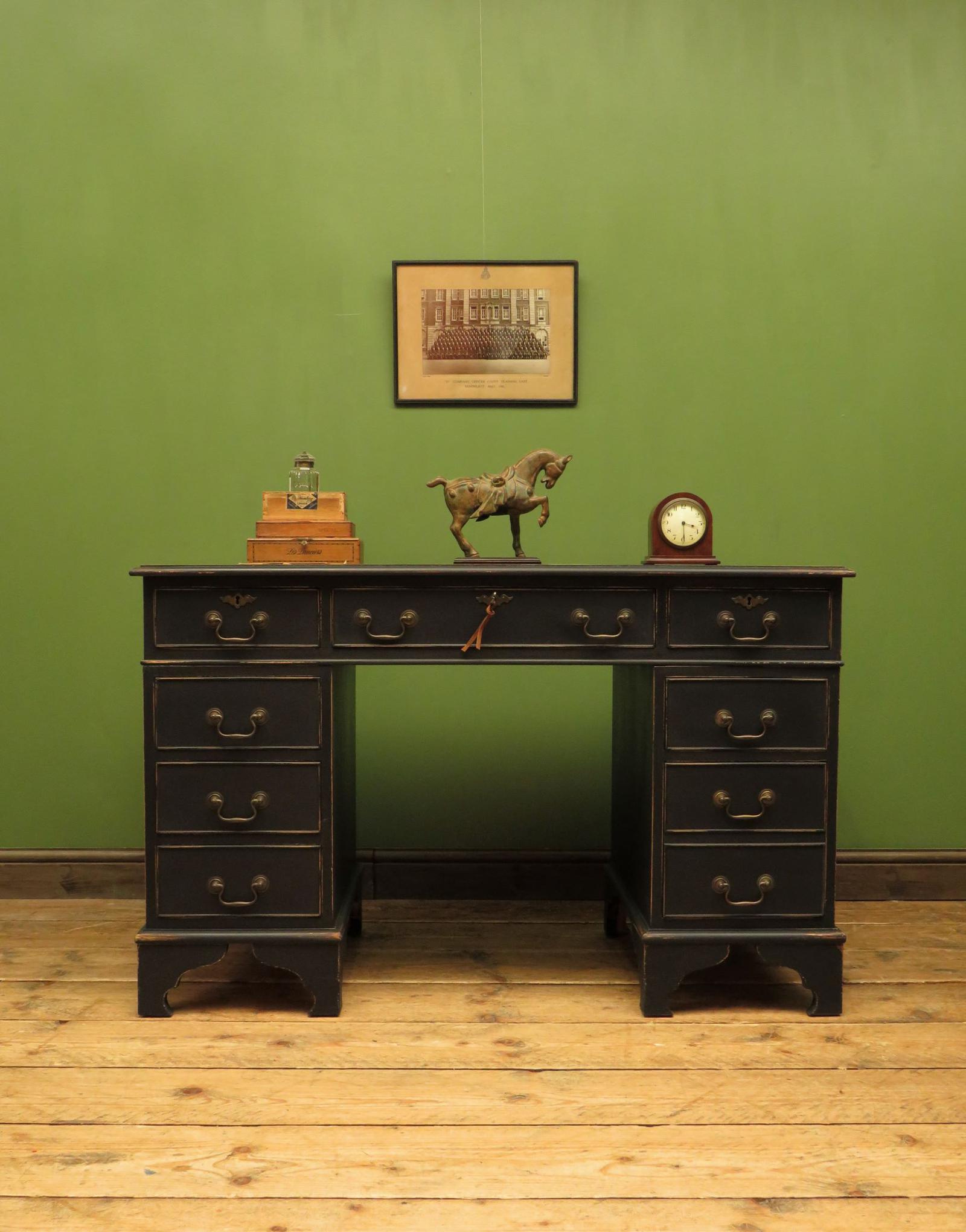 Antique Style Black Painted Pedestal Desk, 3 Parts, Lockable, Gothic Shabby Chic