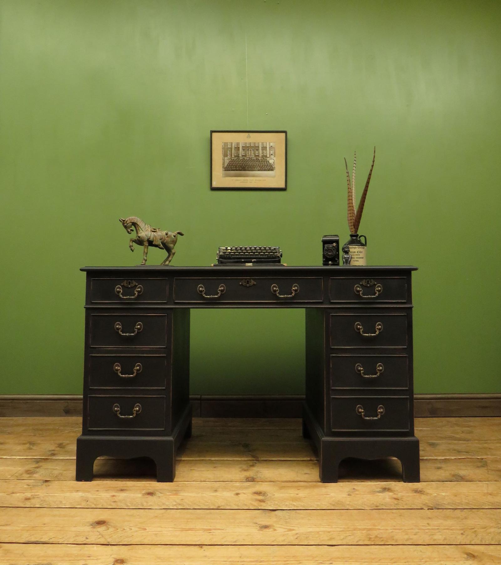 Antique Style Black Painted Pedestal Desk in 3 Parts