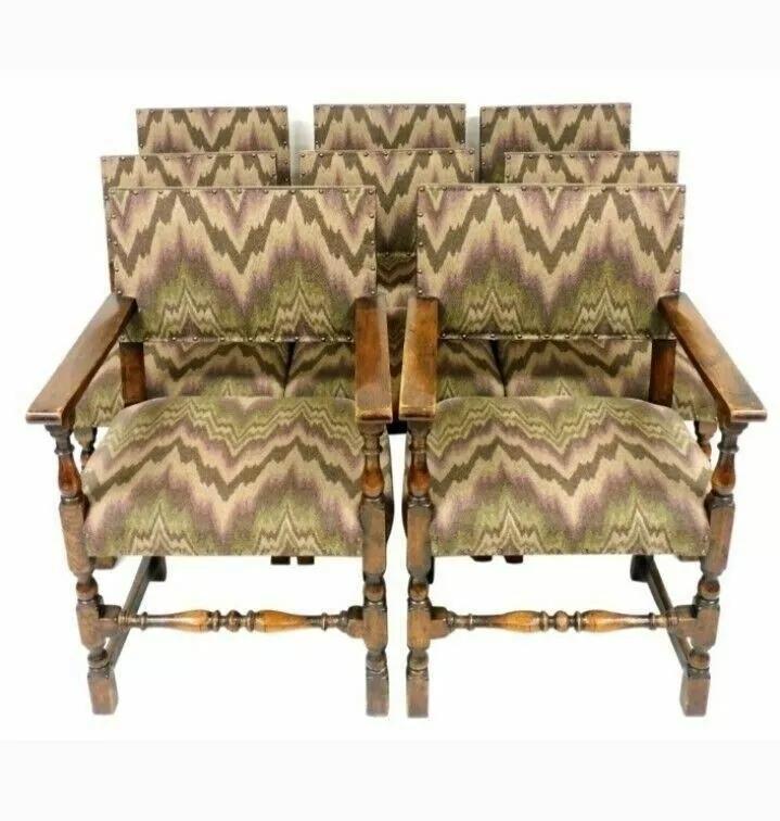 Antique Style Carolean Revival Set of 8 Dining Chairs Mid 20th Century