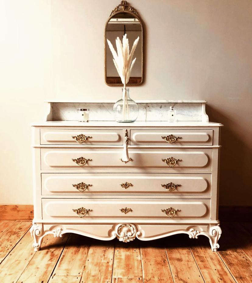 Antique Style Chest of Drawers with Marble Gallery / Grey Drawers