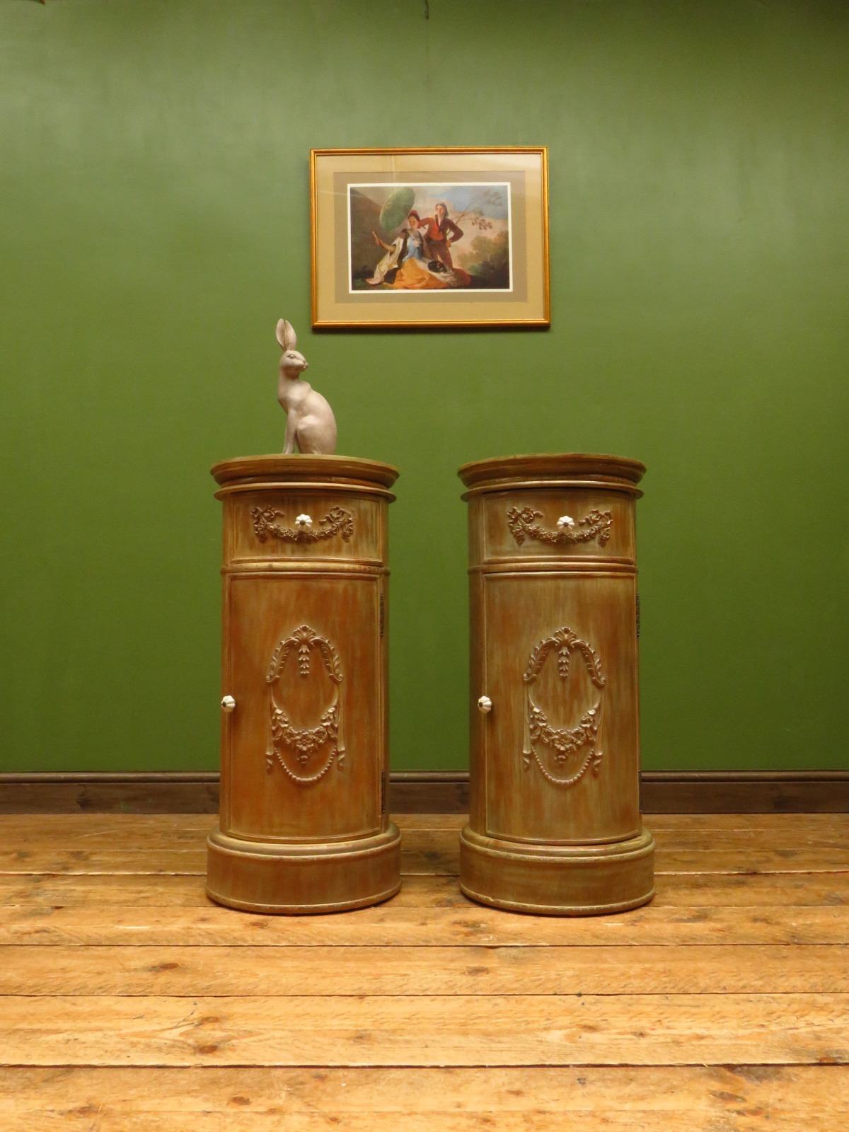Antique Style Pair of Round French Painted Bedside Cabinets