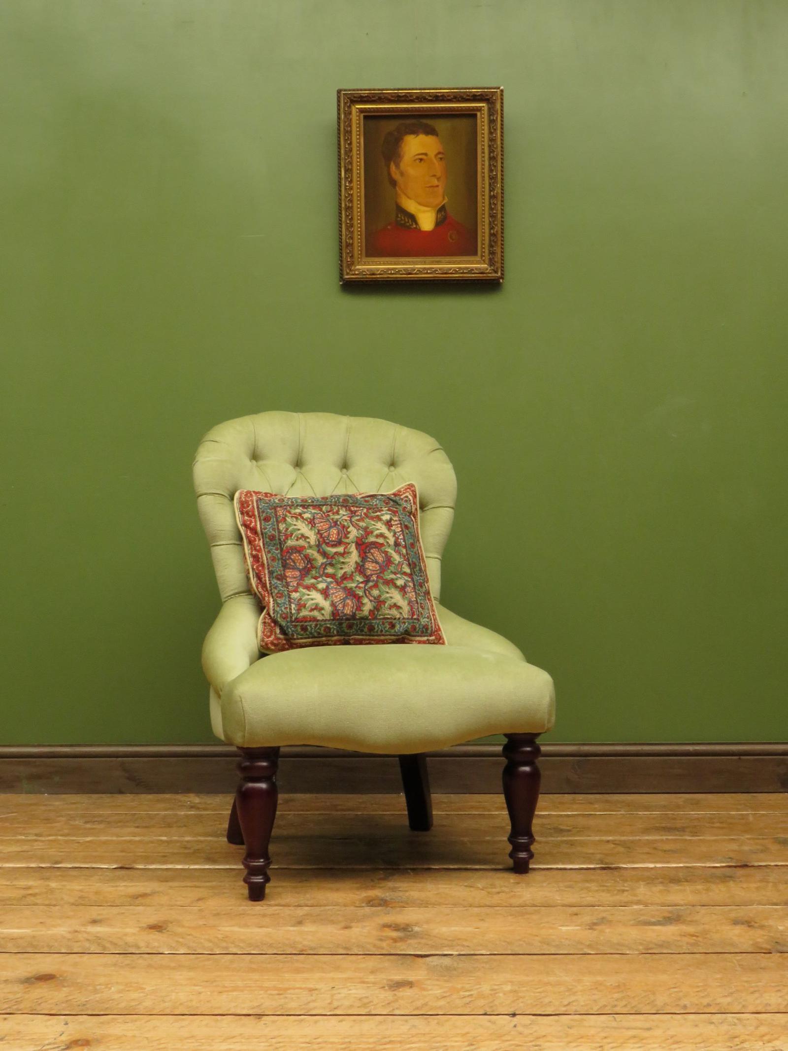 Antique Style Small Green Bedroom Chair, Sandringham Chair by Stuart Jones