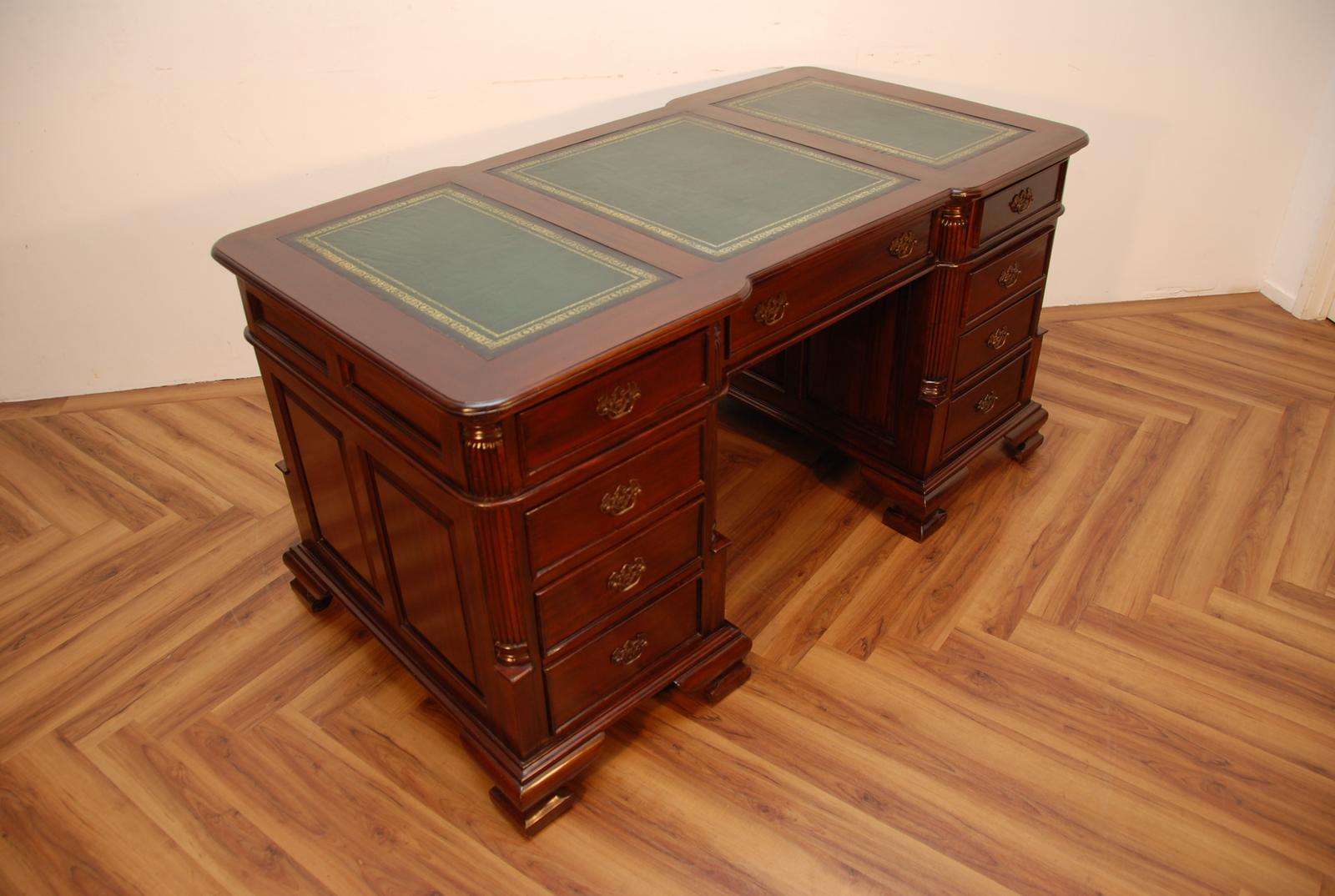 Antique Style Solid Mahogany Desk with Green Leather Top