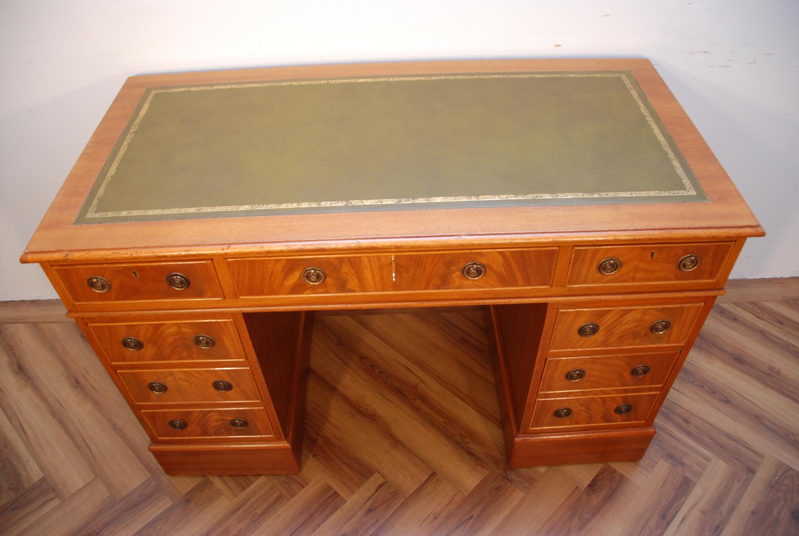 Antique Style Walnut Twin Pedestal Leather Top Writing Desk