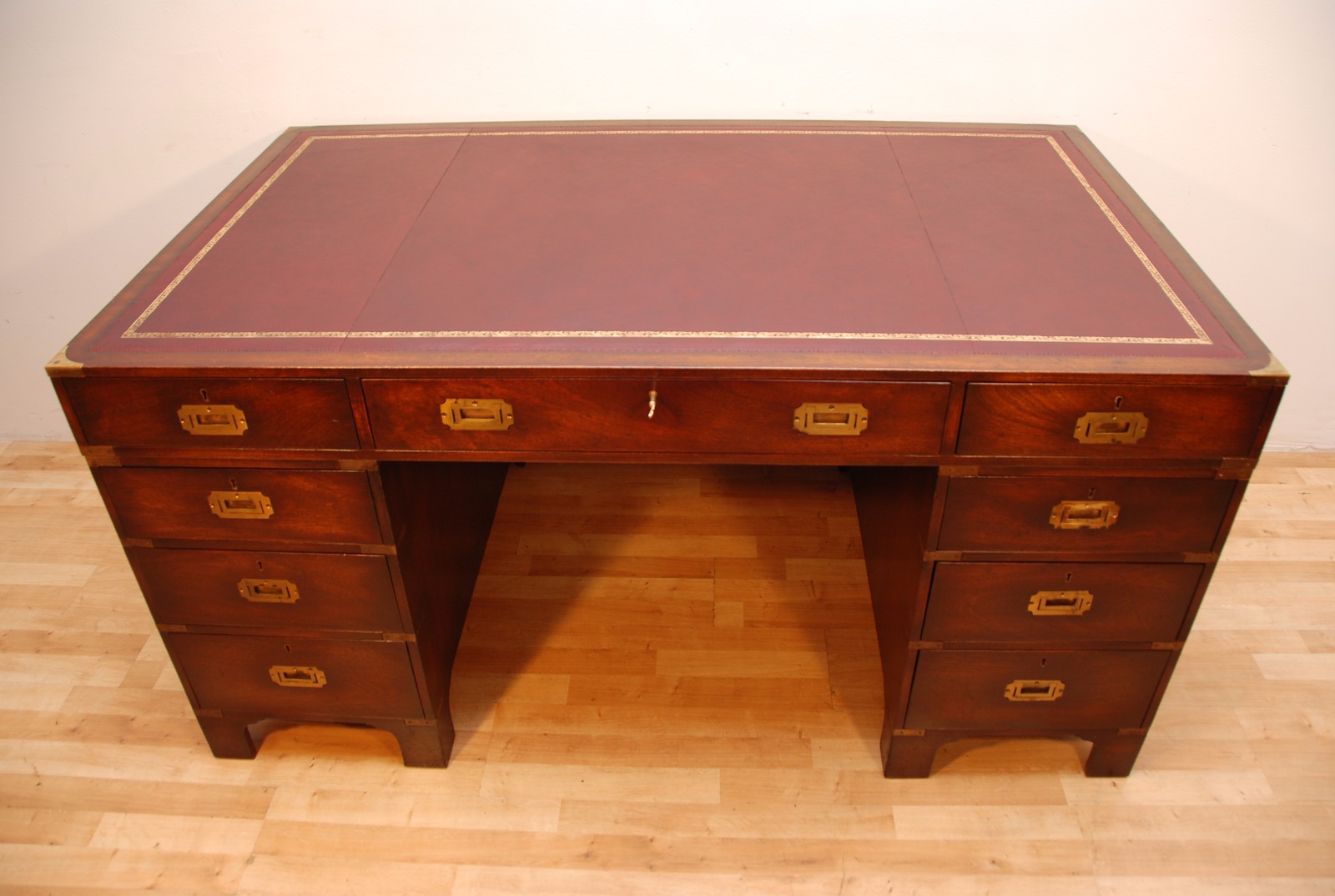 Antique Style Yew Military Campaign Pedestal Writing Desk