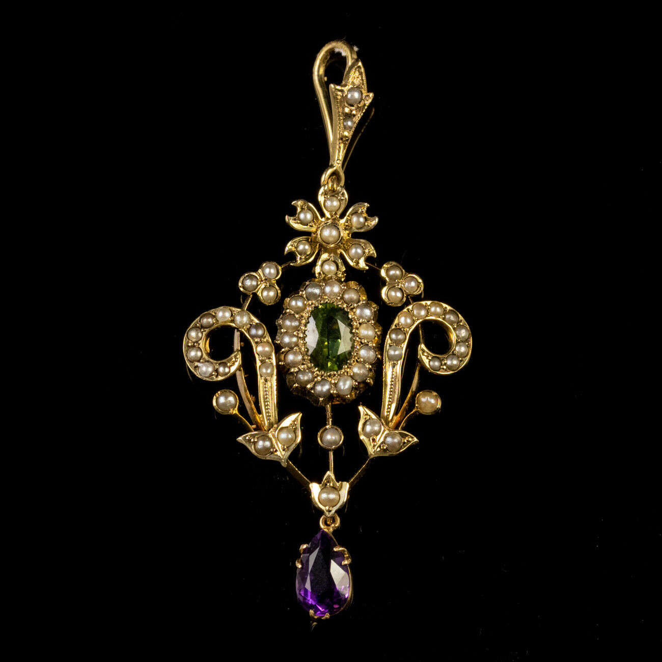 Antique Suffragette Pendant Amethyst Pearl c.1915
