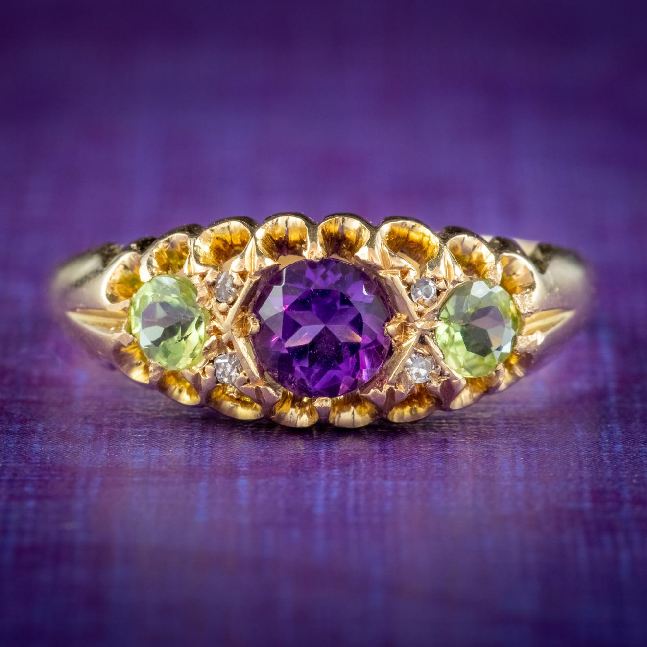 Antique Suffragette Ring Amethyst Peridot Diamond 18ct Gold S Blanckensee And Son Dated 1917