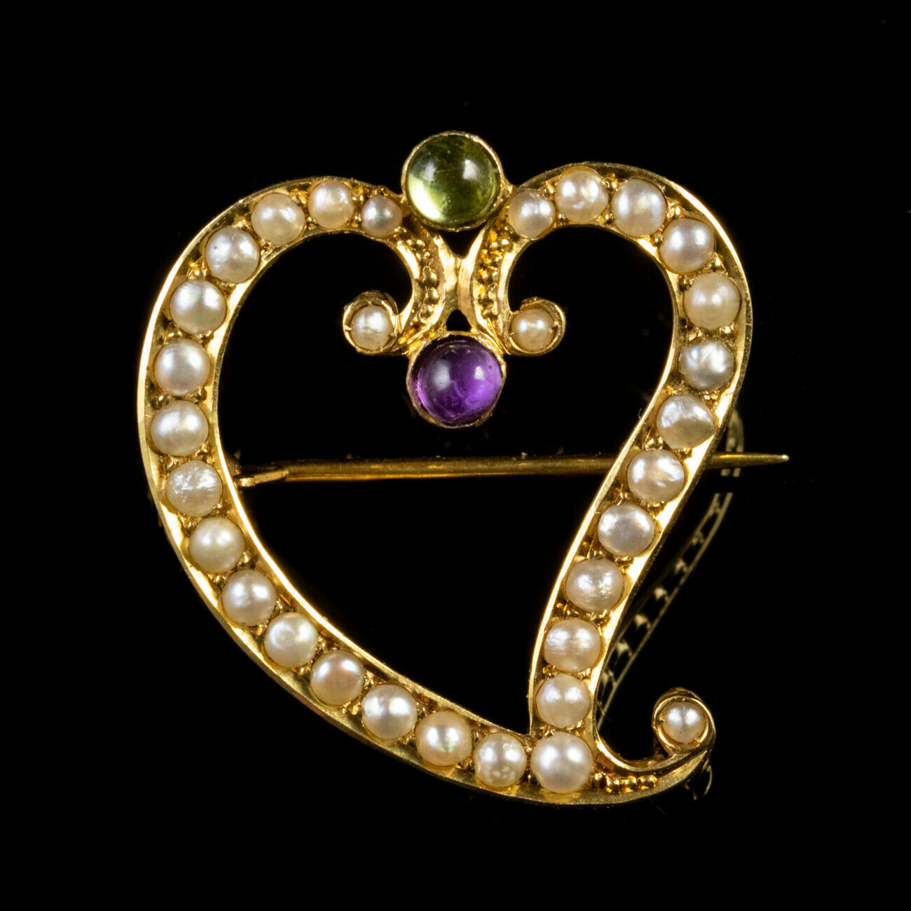 Antique Suffragette Witch’s Heart Brooch 9ct Gold c.1915