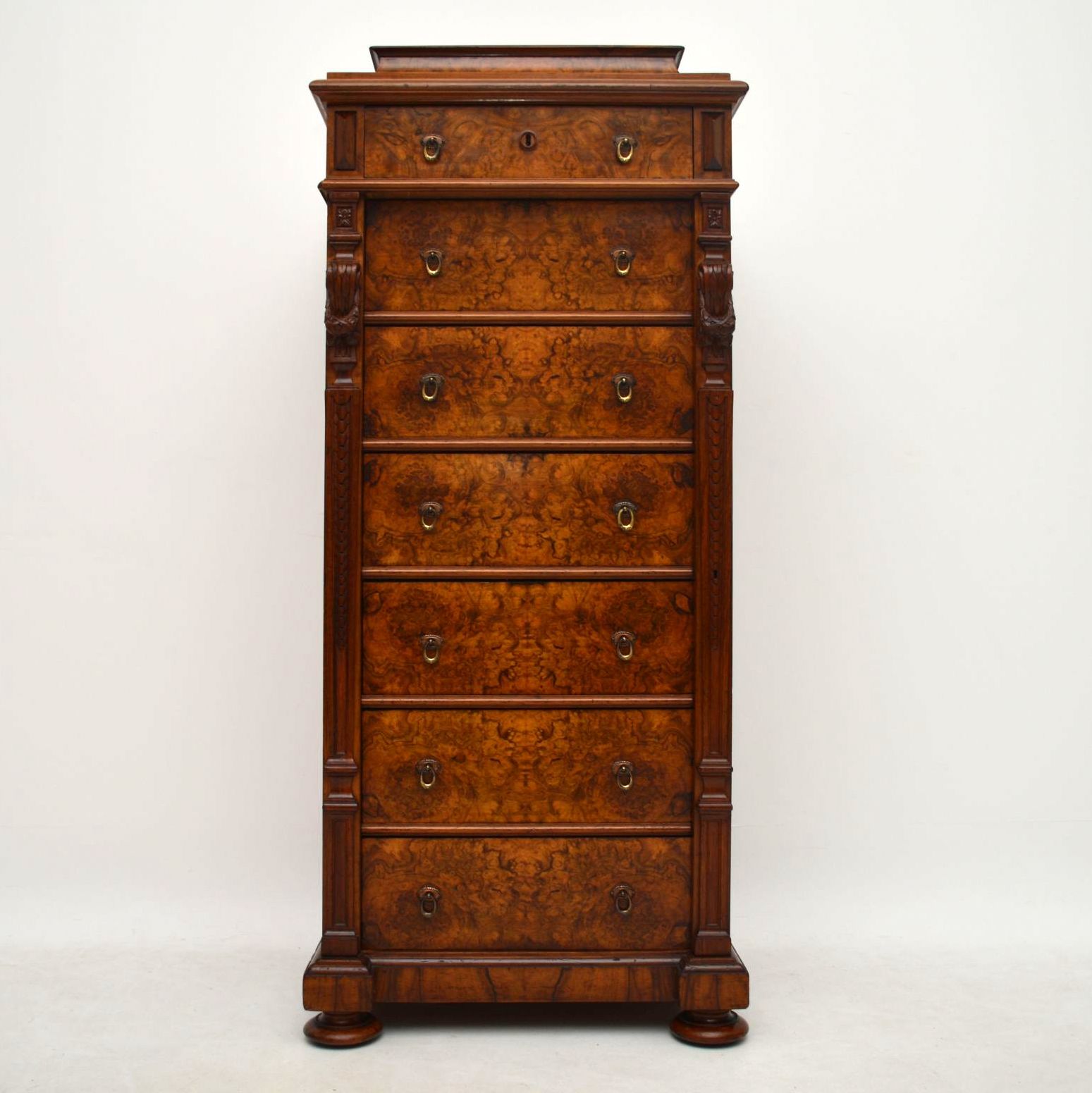 Antique Swedish Burr Walnut Wellington Chest of Drawers