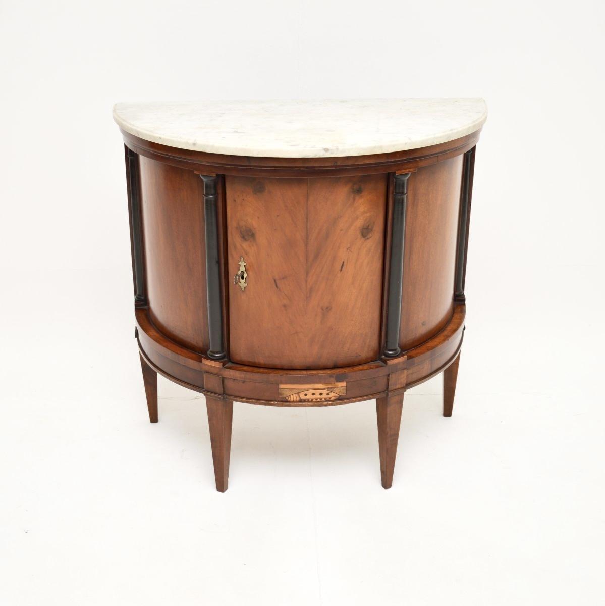 Antique Swedish Empire Inlaid Satinwood Marble Top Cabinet