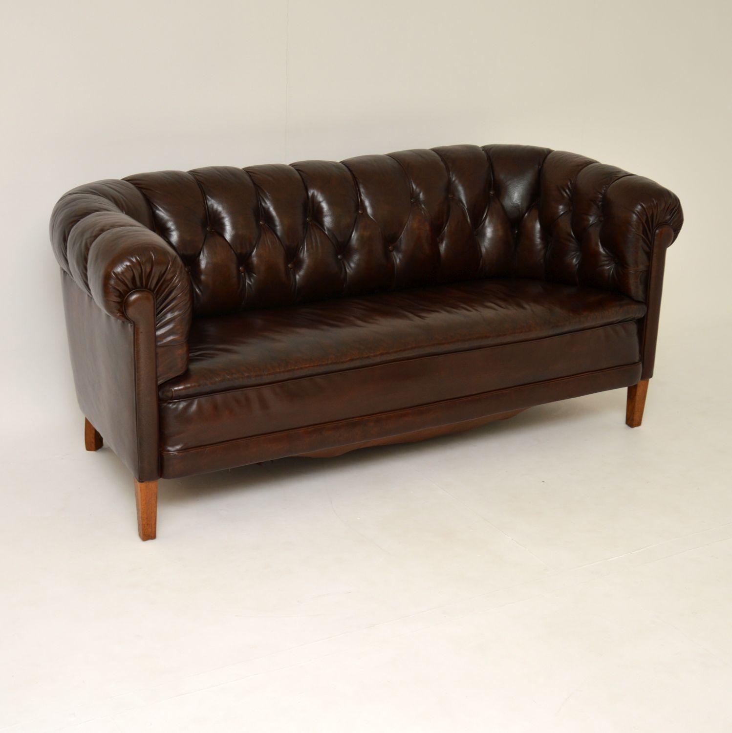 Antique Swedish Leather Chesterfield Sofa (1 of 9)
