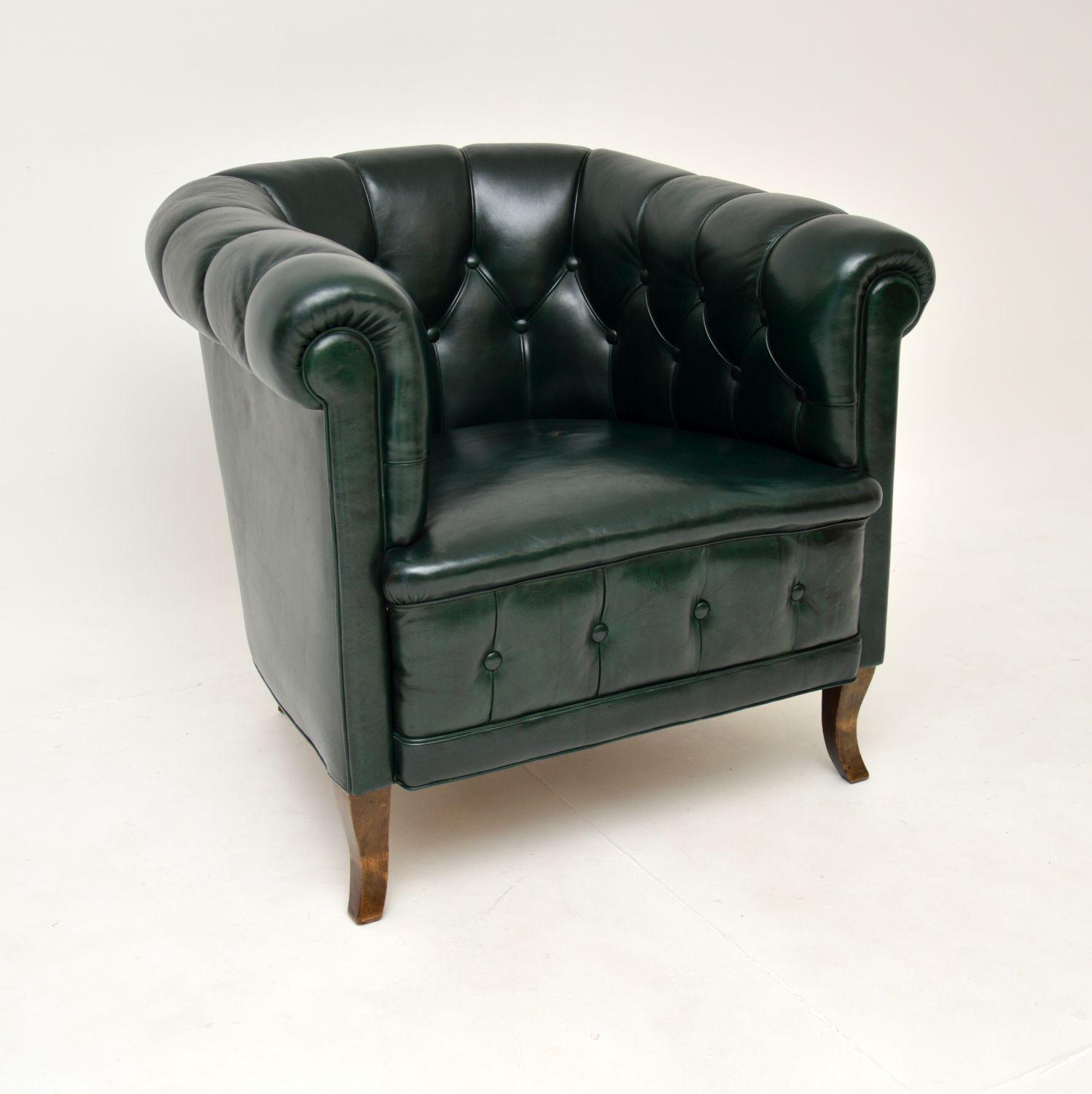 Antique Swedish Leather Club Armchair (1 of 12)