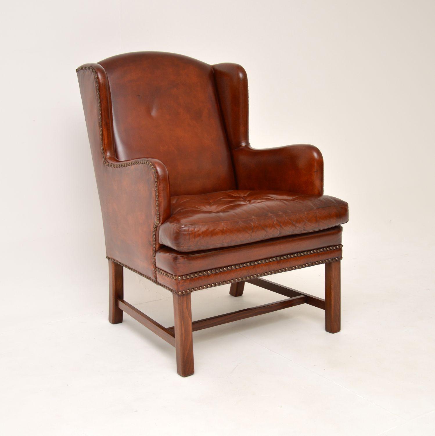 Antique Swedish Leather Wing Back Armchair (1 of 10)