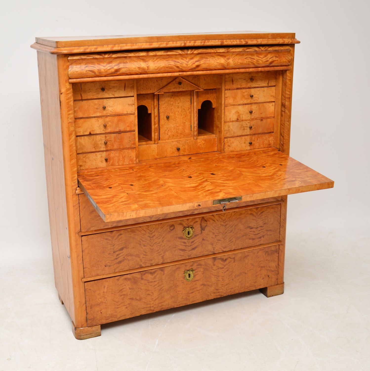 Antique Swedish Satin Birch Secretaire Bureau c.1850