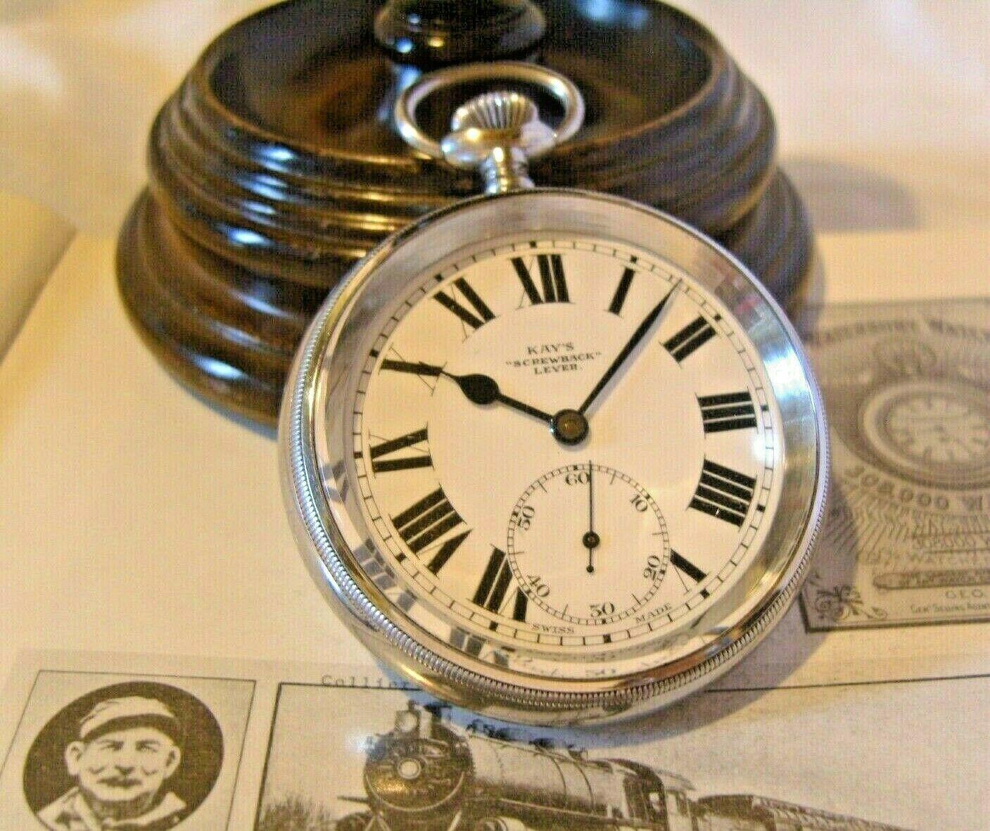 Antique Swiss Pocket Watch 1920s Railway Type 15 Jewel Large Chrome Case FWO