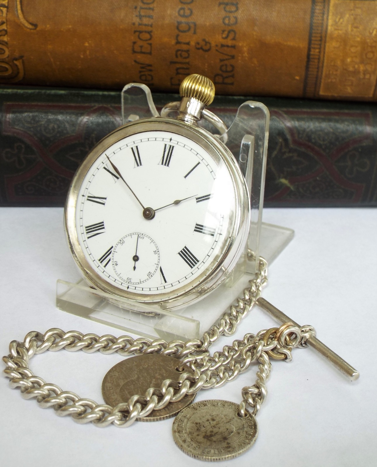 Antique Swiss Silver Pocket Watch & Chain