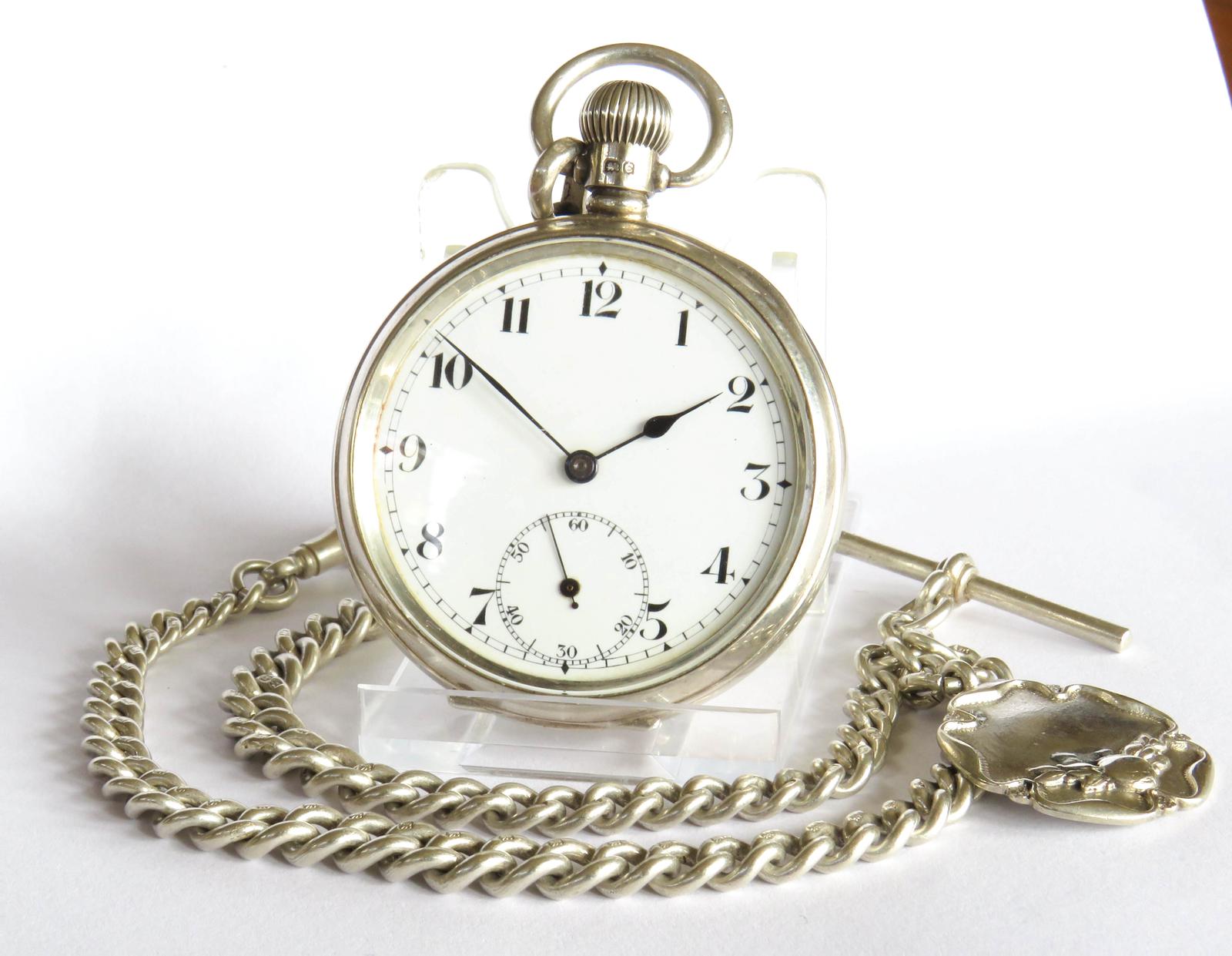 Antique Swiss Silver Pocket Watch & Chain