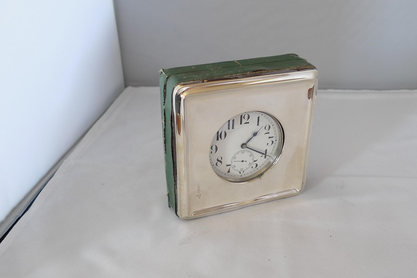 Antique Swiss Steel Goliath Travelling Mint Pocket Watch for Desk Accessory –  In Box Hallmarked Silver London 1918 (1 of 7)