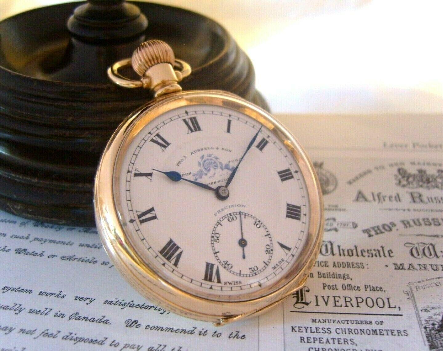 Antique Swiss Thos Russell Pocket Watch 1920 16 Jewel 10ct Rose Gold Filled Case FWO